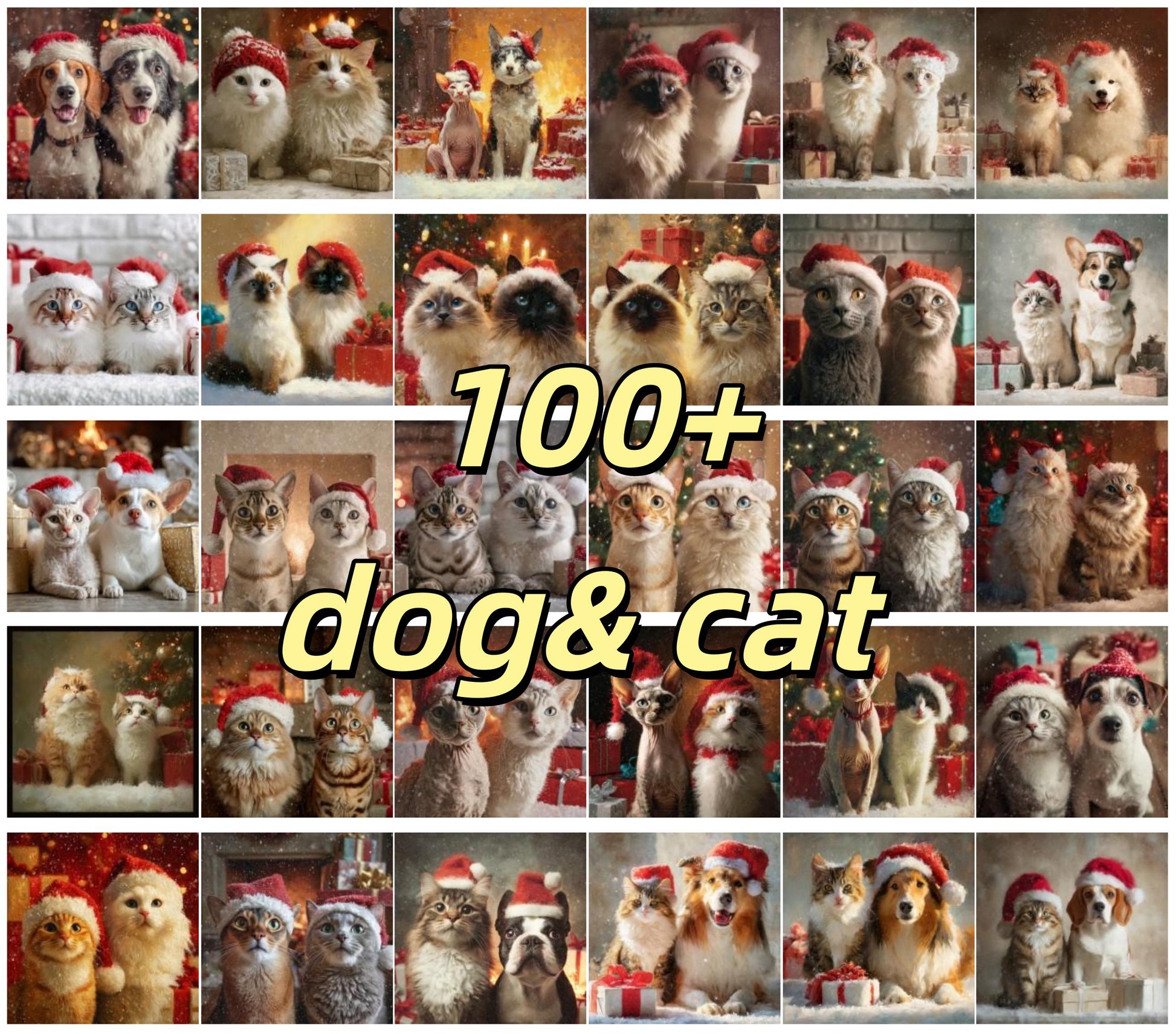 Bundle 100 Designs Watercolor Christmas Dogs&Cats PNG, Festive Dog&Cat Breeds with Santa Hats, Sublimation Dog&Cat Designs, 100 dog&cat Breeds, Commercial Use, Digital Download
